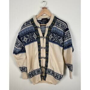 It's a classic piece that will keep you warm and stylish during the colder months. The intricate detailing and high-quality wool make this sweater a must-have for any vintage lover.