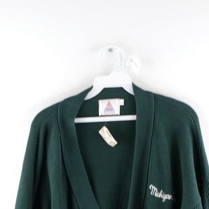NOS Vintage 80s Mens Large Michigan State Spartans Knit Cardigan Sweater Green