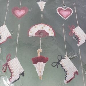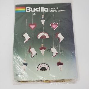 NOS BUCILLA CHRISTMAS ORNAMENT CRAFT KITS SET OF 2 PLASTIC CANVAS SANTA ANTIQUES