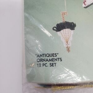 1. "Antiques" ornaments - boots, parasols, fans, hearts. Set of 12. #61049