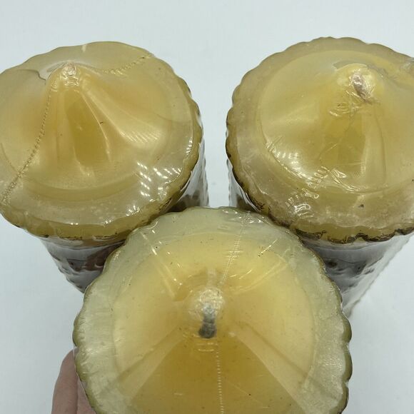 NOS Christmas Candle Wax Pillar gold Vintage Carved wreath Luminaire 9" Lot