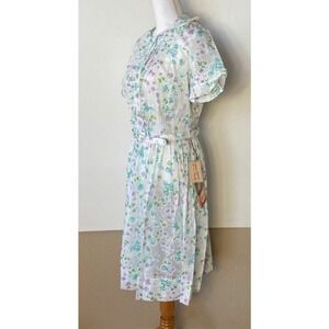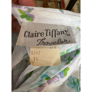 NOS Claire Tiffany Traveler Dress Floral Cottage Core Sheer Belted Vintage Sz 14