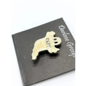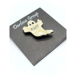 Vintage NOS Halloween White Enamel BEST Ghost Silver Tone Darlene Group Pin Brooch