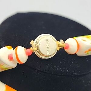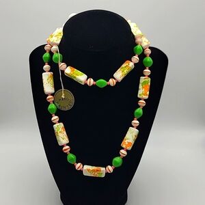 NOS Hong Kong Gold Tone 29" Costume Hand Painted Necklace VTG Triangular Lucite