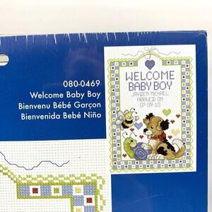 NOS Janlynn Cross Stitch Kit Welcome Baby Boy 6.5”x10” Factory Sealed USA Made