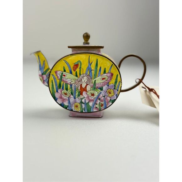 NOS Kelvin Chen Miniature Enamel Copper Decorative Teapot Garden Fairy