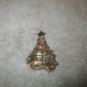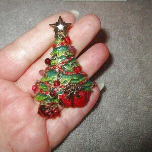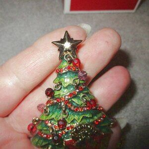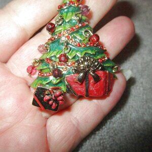 NOS Liz Claiborne CHRISTMAS TREE Jiggly BROOCH Pin PRESENTS Gem DANGLE Ornaments
