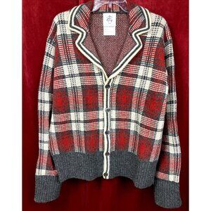 NOS NWT Sz BB5 XL Black Fleece Thick Wool Plaid Cardigan Sweater Thom Browne