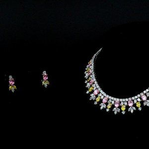 NOS Rucinni Rhinestones Jeweled Crystals Yellow Pink Pastel Necklace Set