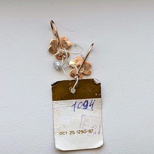 Gorgeous Vintage Russian Russia Soviet USSR NEW OLD STOCK NWT solid 14K 585 Rose Pink Gold Diamond Cut Open Shamrock Flower Dangle Pierced Earrings (marked "585 with star, hammer and sickle" and acid tested). They are about 20mm in length (with hook part) by about 12mm in their widest. These unique earrings weigh about 3.07 grams and have tag attached. (RGE)