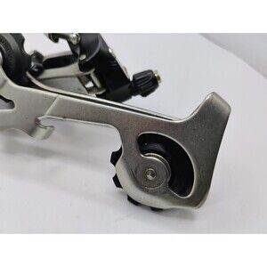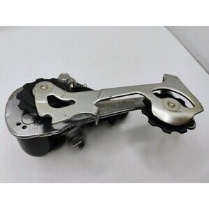 The NOS Shimano Altus A10 rear mech derailleur is a vintage old 7-speed unit designed for road bikes. With a classic black color and a long cage derailleur cage length, this rear derailleur is compatible with 7-speed bicycles. The set includes the rear derailleur component, perfect for cyclists looking to upgrade or replace their existing rear derailleur. Made by renowned brand Shimano, this derailleur offers reliable performance and durability for cyclists seeking a high-quality component for their bike.