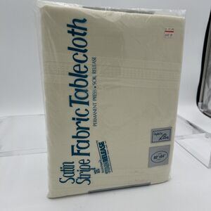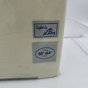 NOS Satin Stripe Fabric Cream Tablecloth NIP 100% Textured Polyster 60 x 84 Oval