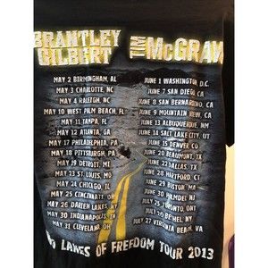 NOS TIM MCGRAW / BRANTLEY GILBERT 2013 Two Lanes Freedom Tour Concert T-shirt S