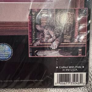 New Old Stock Unopened 2001 Dimensions Counted Cross Stitch Frederick The Literate #35048. Contains floss, Aida cloth, thread palette, needle & instructions. Finished Size 12 x 11 Unframed. Smoke Free Home. #dimensions #crossstitch #cat #library #bookshelf