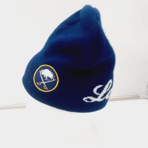 NOS VTG Lablatt Buffalo Sabers HOCKEY Blue knit Beanie Hat w/Sabers Logo Patch