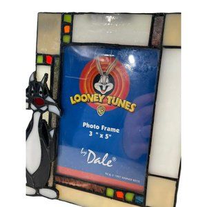 NOS VTG Sylvester Looney Tunes 1996 Stained Art Glass Picture Frame By Dale Read