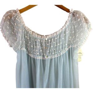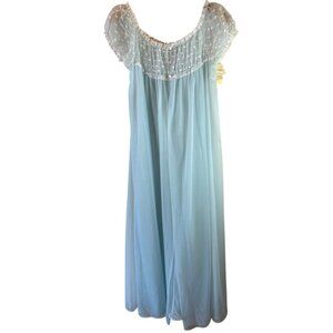 NOS Vintage 60's Vassarette Blue Nylon Chiffon Robe Nightgown Size 36 Full Sweep