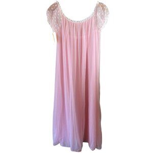 NOS Vintage 60's Vassarette Pink Nylon Chiffon Robe Nightgown Size 36 Full Sweep