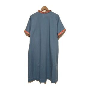 NOS Vintage 70s Model’s Coat Blue Red Posey Pocket Housecoat Ruffle Snaps XL 16