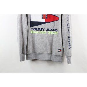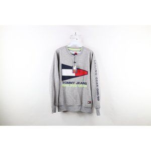 NOS Vintage 90s Tommy Hilfiger Mens Small Spell Out Sailing Flag Sweatshirt Gray