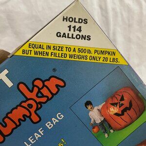 This is a New Old Stock Box containing a 114 gallon leaf bag shaped like a Jack-o-Lantern. Made in the USA by Sun Hill, this box comes with its original receipt from 8-20-1990. There is some damage to the box from storage (See photos) but the contents of 1 stuff a pumpkin, and 1 stalk twist remain sealed in the box.