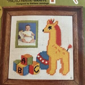 NOS Vintage Needlepoint Kit Sunset Designs Jiffy Photo Frame GIRAFFE Baby 1977