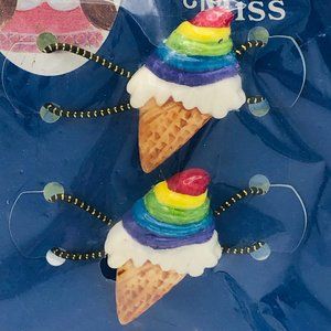 NOS Vintage Pretty Miss Tip Top Card of 2 Rainbow Ice Cream Cone Hair Elastics