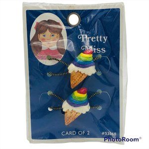 Vintage Pretty Miss Tip-Top card of 2 rainbow ice cream cone hair elastics, made in Taiwan. Brand new in original factory sealed shrink wrap! Smoke free, pet friendly home.