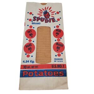 NOS Vintage 1950’S Spudie Potato Sack 10 lbs Paper Bag Advertising USA Printed. Brand new and in very good condition. Item will be packed with care. See pictures for details. Message us if you have questions. Check our store for similar collectible, antique and vintage items. Reasonable offers are considered.