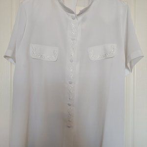 NOS W/Tag Kathie Lee White Blouse W/White Embroidery W/Side Slits On Bottom