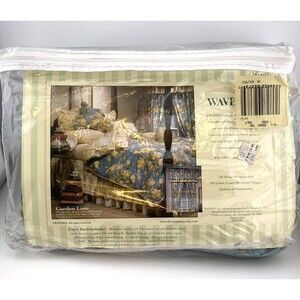 Vintage, New old stock, Waverly duvet cover in Twin size. Print is called Garden Lane, which is a dusty blue with yellow, beige and green floral print. Very beautiful cottage style print and color-way. Made in the USA. New in original packaging.