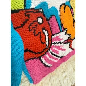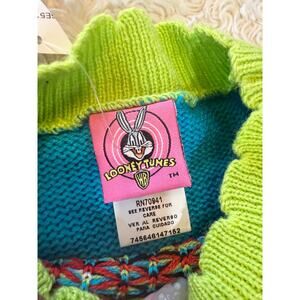 Adorable acrylic sweater with bright colors, scalloped neckline, and cute Tweety Bird graphic.