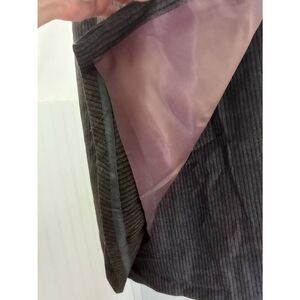 Shades of Brown & gray striped ( not corduroy) button closure. Curved front detail. Lined.