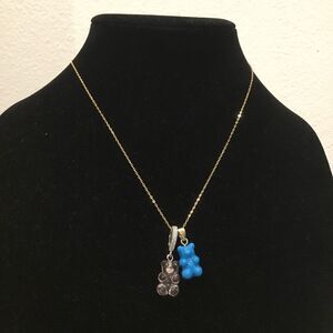 The gummy bear pendant evokes a sense of nostalgia for many, reminding us of the colorful, chewy candies enjoyed during childhood. The addition of zircon stones adds a sparkling, luxurious element, while the gold plating gives it an elegant shine. This combination makes the gummy bear pendant not just a piece of jewelry, but also a conversation starter that brings back sweet memories of carefree days filled with laughter and fun.