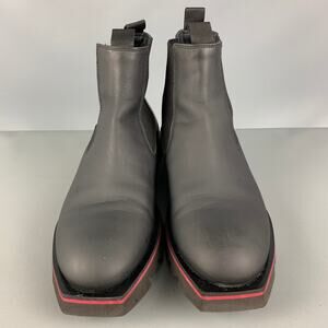 NOSTRASANTISSIMA boots comes in a black leather featuring a chelsea style and hiking sole style. Made in Italy.