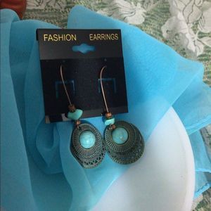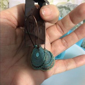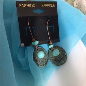 NOS VINTAGE EARRINGS Wires Pierced Turquoise Copper Beaded Medallions