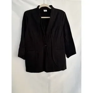Cabi Blazer Size 6 Black Jacket Turner Knit Collarless Single Button Ladies