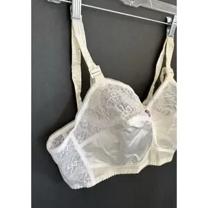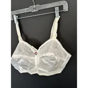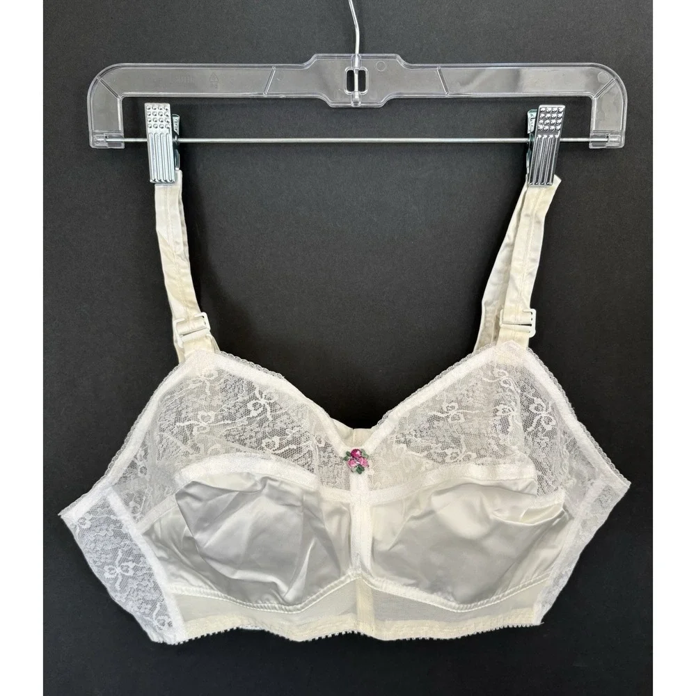 Vintage Sculptress 34DD White Lace and Satin Soft Cup Bra Style 1725