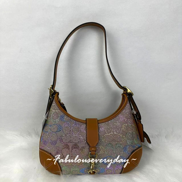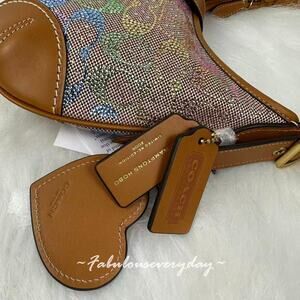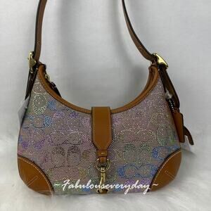 New With Tags, Coach Hamptons Hobo Bag Shoulder In Crystal Signature Jacquard Rainbow CCX16 NWT from smoke and pet free environment.