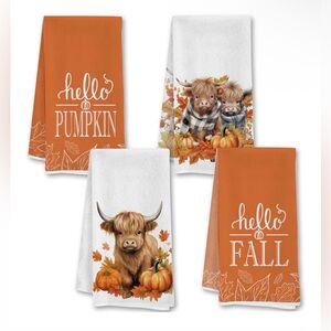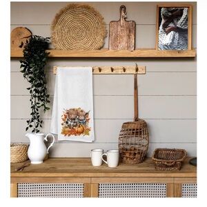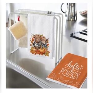 Add a touch of fall charm to your home with these delightful hand towels featuring adorable cow and pumpkin designs. The vibrant orange and crisp white colors bring a festive feel to your home bath decor.