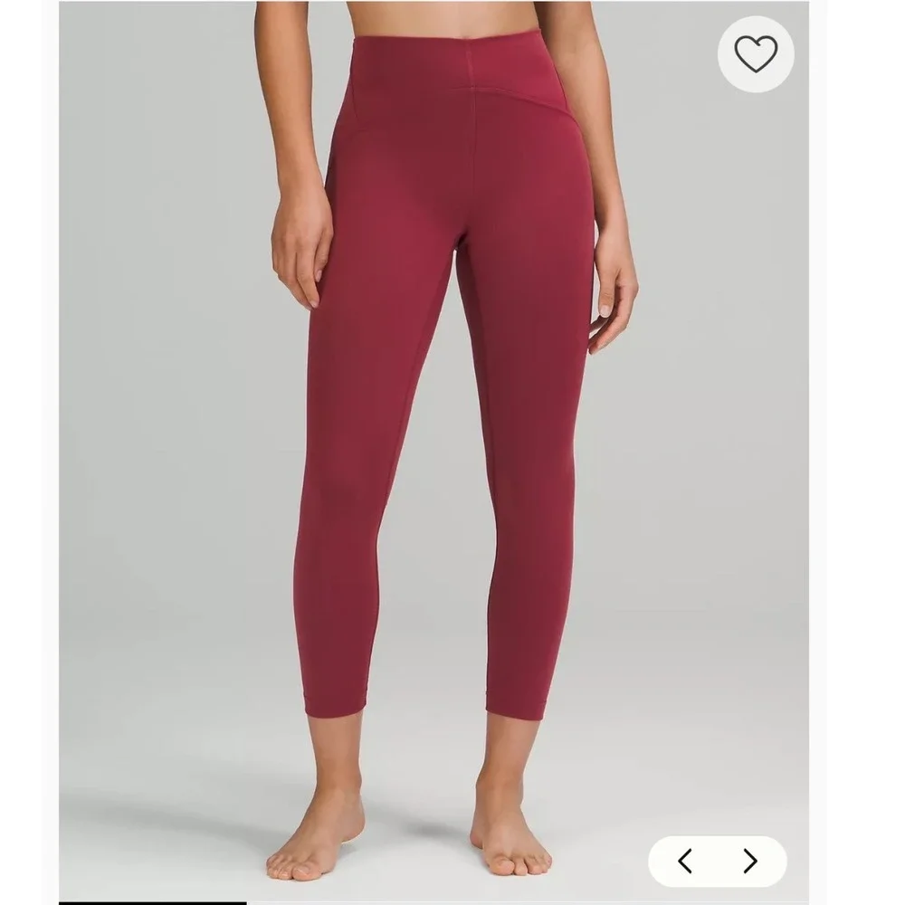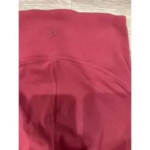 Lululemon Instill High-Rise Tights in a rich red-burgundy hue, crafted from buttery-soft SmoothCover fabric that provides a supportive, hugged sensation. These 25" leggings feature a contoured waistband designed to stay in place during yoga or training, with minimal seams for a streamlined look and a hidden waistband pocket for small essentials. The technical fabric is breathable and sweat-wicking, making them ideal for high-intensity workouts or everyday athleisure wear. These leggings are in excellent condition with no visible signs of wear.