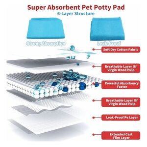 High Quality: Apart from the powerful absorbency factor, the details of these potty pad disposable are also well designed. The top layer of the pee pads is a soft dry cotton fabric that is comfortable to the touch and does not stick to the fur; the bottom layer is PE material that prevents urine from leaking out and soiling the cage and floor; the edge locking design prevents side leakage and is easy for the owner to change without getting your hands dirty