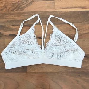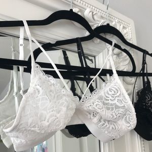 I love pretty lace bras to wear under tanks or tees. These have two layers, a thin semi sheer lace and the floral overlay. 3 teared adjustable back, adjustable straps and a caged front look. Elastic band has a 1" stretch allowance.