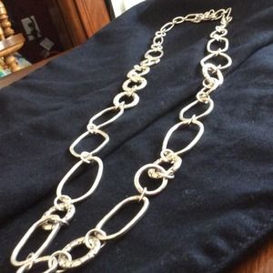THIS NECKLACE HAS DIFFERENT SHAPES AND SIZES IF SILVER LINKS ALSO LINKED WITH PEBBLESTONE ROUND LINKS. LOOKS GREAT BY ITSELF OR COMBINE IT WITH THE BROWN AND PEBBLESTONE NECKLACE I ALREADY HAVE UP FOR SALE...JUST A SUGGESTION!!!πππ