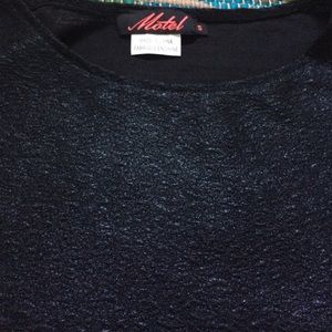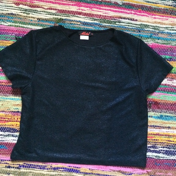 Boxy black top with metallic black texture.