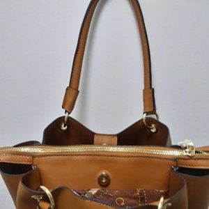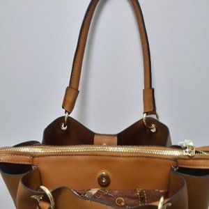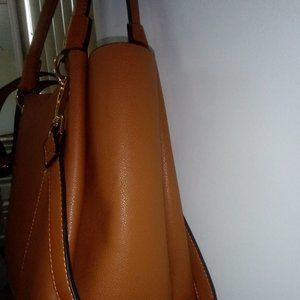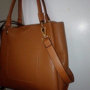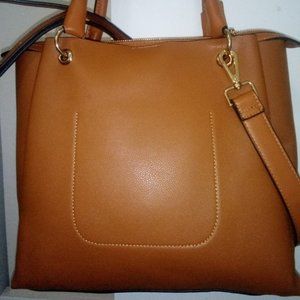 NWOT Brown Handbag. Very spacious with zipper in the middle, snaps to the sides, Long straps are removable.