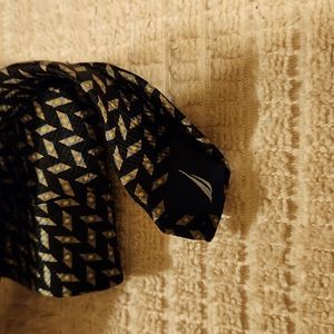 TIE...100% SILK....BLACK..LITTLE DESIGNS THAT LOOK LIKE GOLD/LIGHT BLUE...EXCELLENT CONDITION...BIN #10
