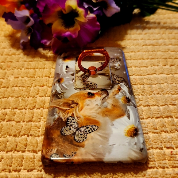 PHONE PROTECTOR FOR GALASY S8... WITH CLEAR RING STANDING... ...CHIHUAHUA,PLAYING WITH BUTTERFLIES...VERY GOOD CONDITION...BIN #10