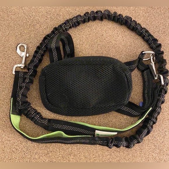 durable and thick. The bungee leash is suitable for medium to larger sized breeds as it may slightly be bulky for small dogs. But you can add your own clip leashes to the waist pouch. May arrive e with minor fur.