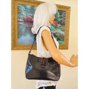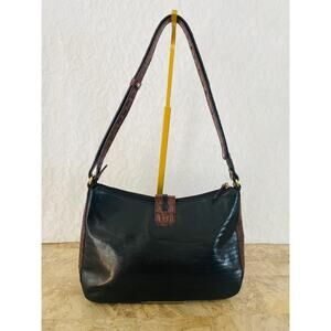 Vtg Brahmin small black croc/leather Y2K shoulder bag
